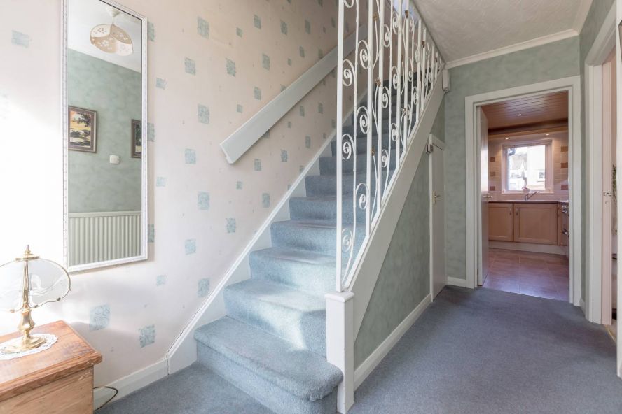 • Welcoming entrance hall with a carpeted staircase and a useful understair cupboard housing the combi boiler.