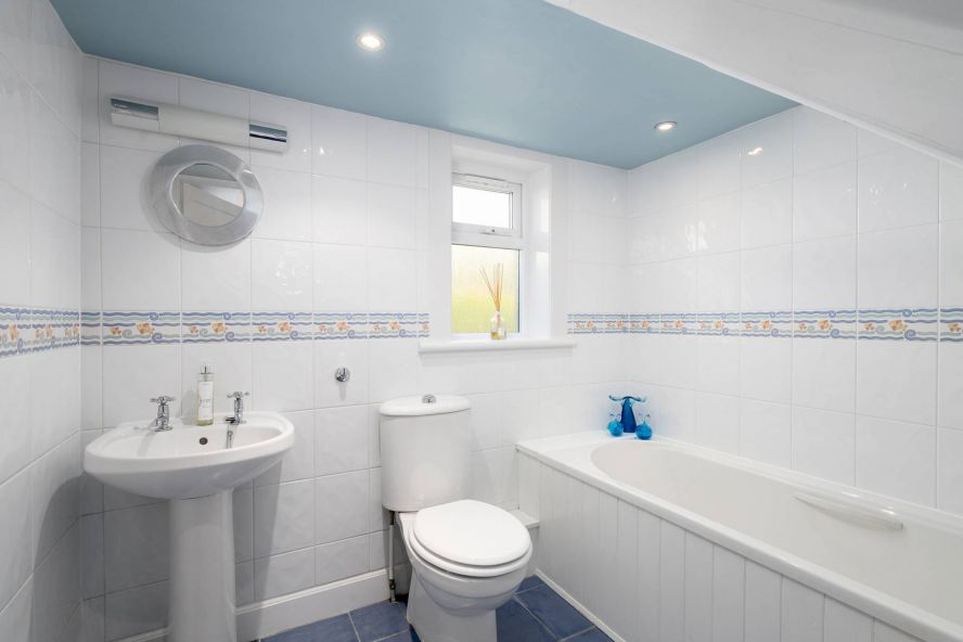 • Stylishly appointed, fully tiled ground floor bathroom, complete with bath, WC and wash hand basin